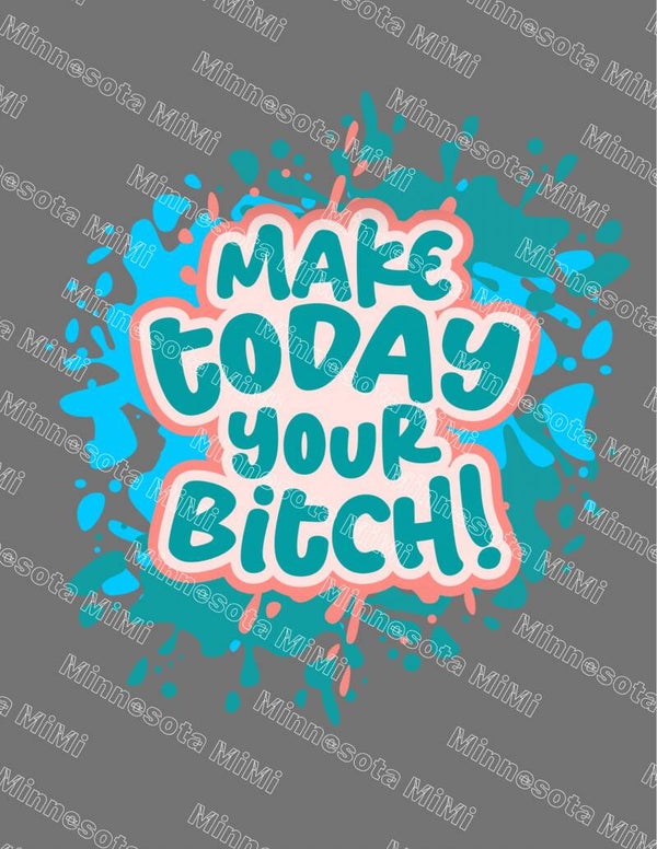 Start your day with a splash of bold energy in this fierce and fun graphic tee! Featuring the phrase “Make Today Your Bitch!” in a vibrant mix of teal and coral, this shirt is for the go-getters, the goal crushers, and the unstoppable spirits. Printed on a soft heather gray cotton tee with a bright splash-style background, it’s the perfect mix of attitude and motivation.